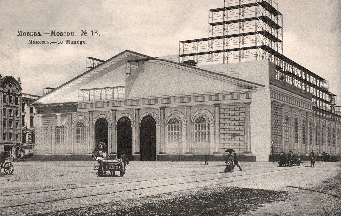 Сами здания подвергались многочисленным реконструкциям, горели, как, например, Манеж в 2004 году, и даже перемещались, превращаясь со временем в «тени» самих себя. Поэтому сложно определить, что является более аутентичным: нынешняя версия здания Манежа или его фальш-фасад.