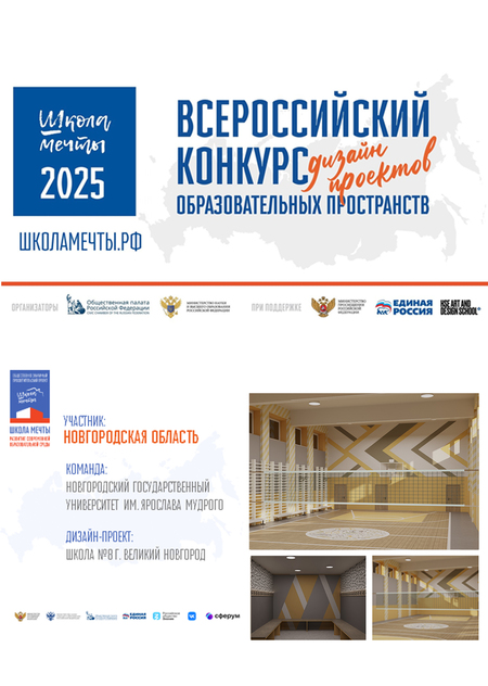 Концепция дизайна школьного спортивного зала основана на использовании жёлтых оттенков и динамичных линий, подчёркивающих энергию движения и активность. В контраст к этому, стены в раздевалках окрашены в спокойные, нейтральные тона, создавая зону отдыха и восстановления.