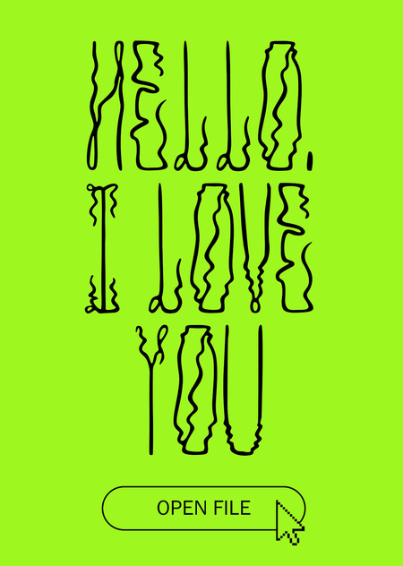 Акцидентный шрифт, вдохновленный вирусом ILOVEYOU — самым известным компьютерным вирусом в истории, который появился в мае 2000 года. Его еще называли «компьютерным червем», что и стало основной идей для шрифта.