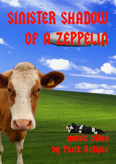 И вдруг, откуда ни возьмись, под жёсткий рок в кадре появляется дирижабль Гинденбург и падает прямо в них. Коровы разлетаются во все стороны как кегли от мощного страйка.