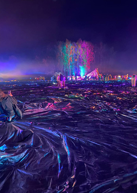 «Волшебное Одеяло» — проект художника и архитектора Александра Штанюка. Впервые представлено на Архстояние, далее на фестивале «Burning Man». Представляет собой более 300 склеенных между собой блестящих пледов, создающих в итоге умопомрачительное ощущение зеркальных волн на ветру с отражением солнечного света. По просьбе Александра я играл специальный сэт на презентации перфоманса прямо в поле под большим одеялом, с заранее установленной светомузыкой и аппаратурой.