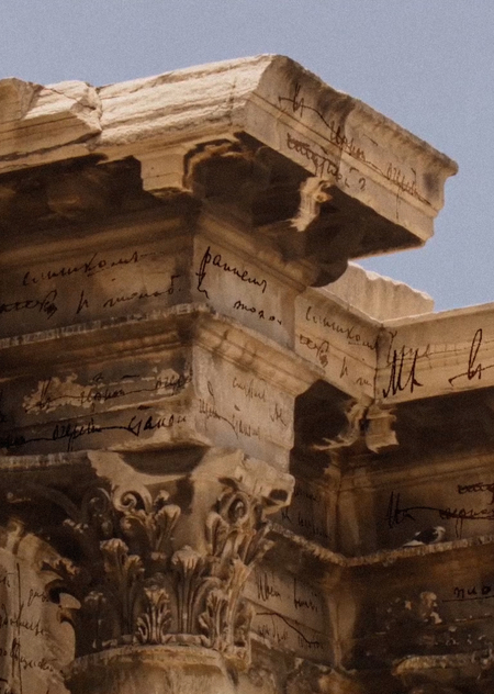 Помимо надписей, созданных уже на этапе постпродакшна, в фильмах Ромы Либерова много документальных съемок улиц и того, что на них происходит. Иногда камера специально фокусирует внимание зрителя на чем-то отдельном, часто — на мемориальной табличке на стене дома или на надгробной плите с конкретной фамилией. Изящные формы монументальных исторических шрифтов встречаются с нелепой рекламой русских товаров в Америке, а память о наследии Мандельштама проявляется не только в сохранении памятников, но и в экспрессивном уличном искусстве.