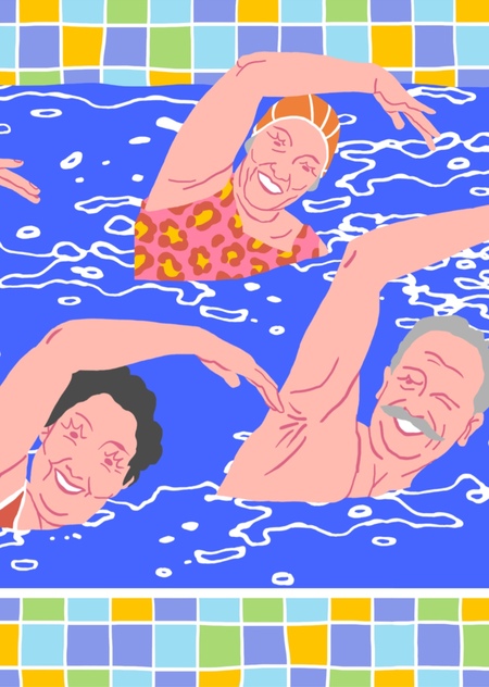 Иллюстративная айдентика для бассейна, где спорт воспринимается как отдых, а здоровье — залог счастливой жизни.