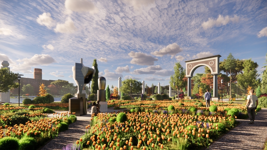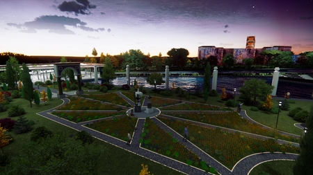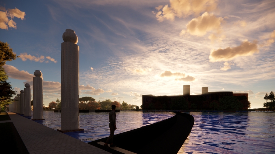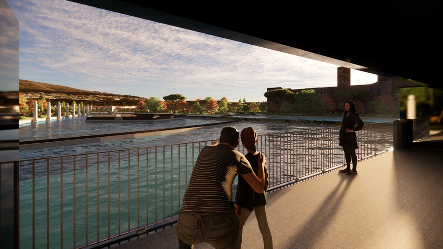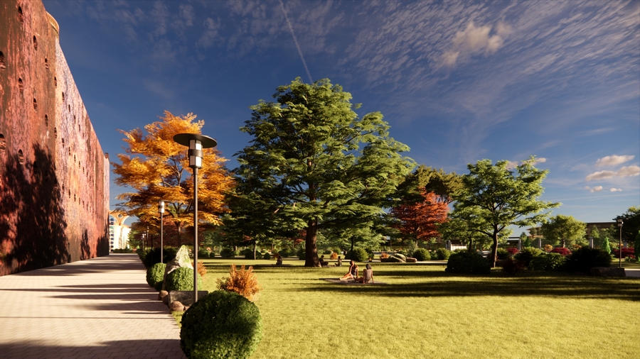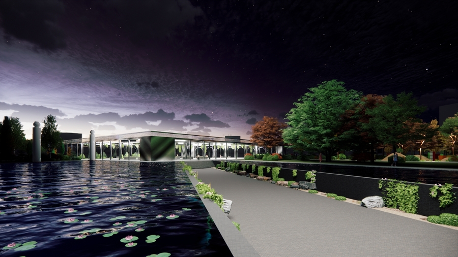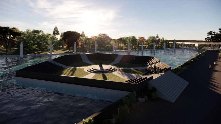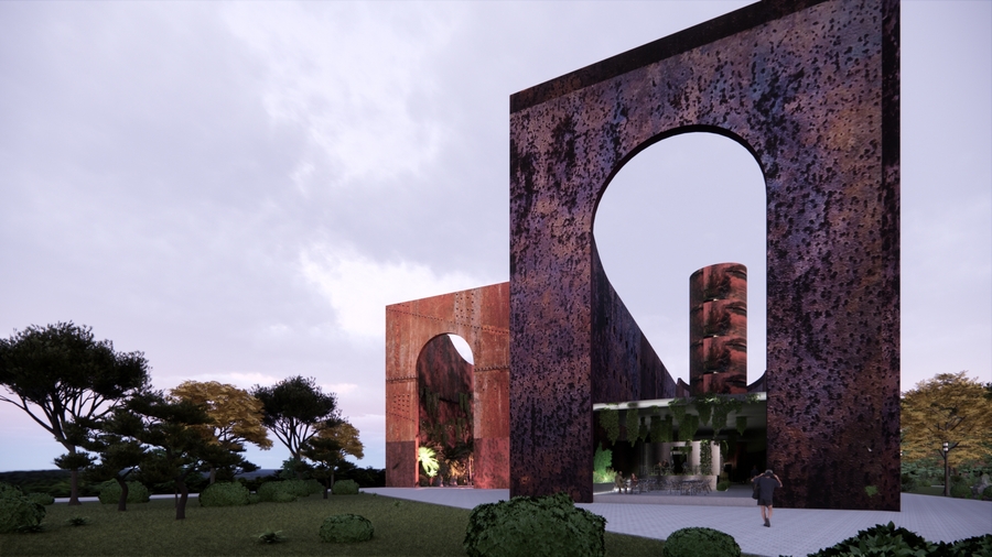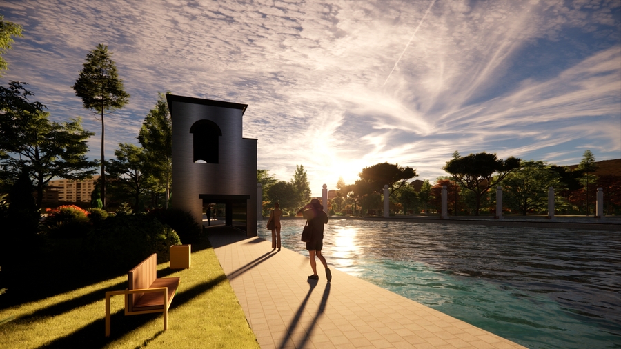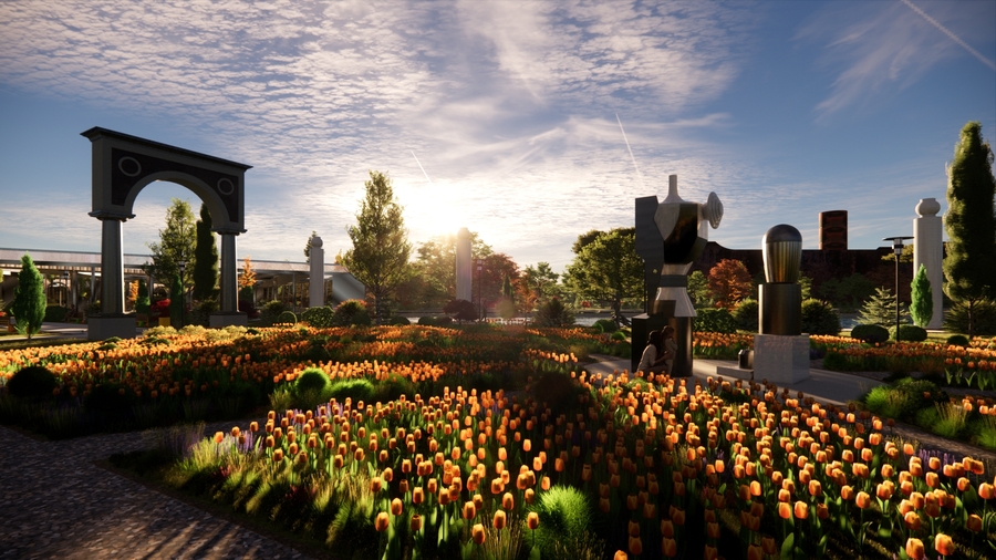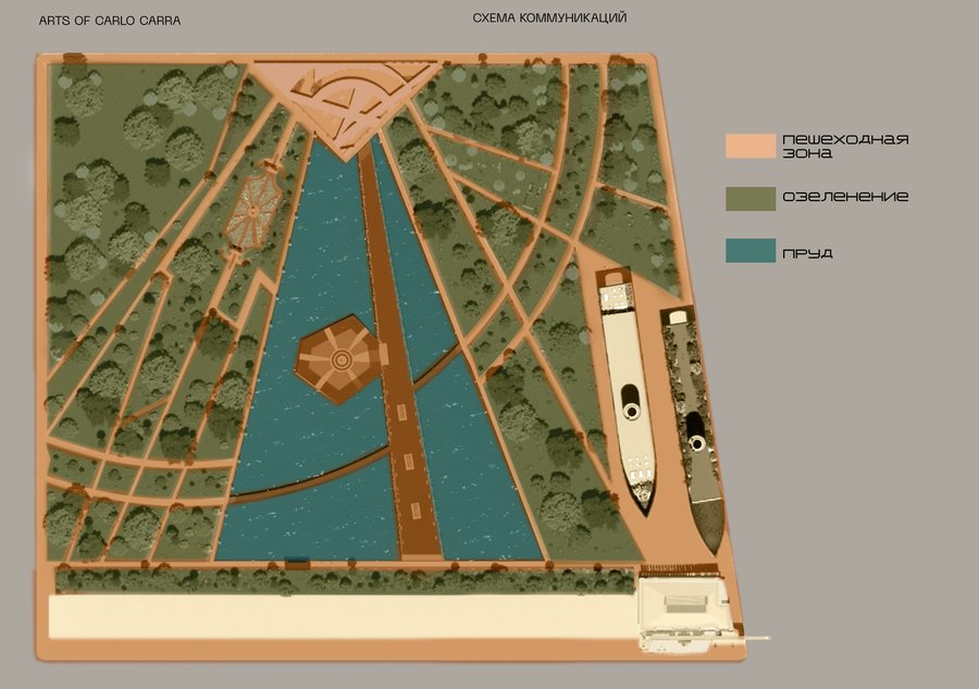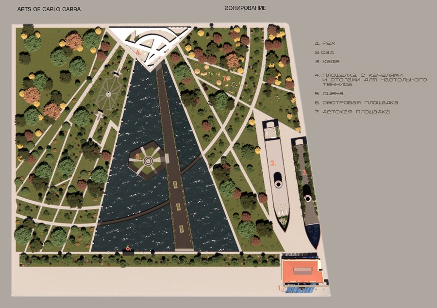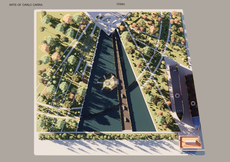 Проект парка, вдохновленный работами итальянского художника Карло Карра, представляет собой пространство, где архитектура и природа соединяются в единстве. Парк разделен на несколько уникальных зон, каждая из которых наполнена элементами, отражающими творческую манеру художника. Главные особенности парка — два корабля, в которых размещены сад и ресторан.