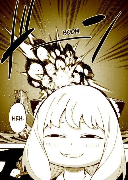 Интересное заигрывание с шаблонами жанра сёдзе можно найти в применении автором «Семьи шпиона» характерных искрящихся скринтонов, чтобы подчеркнуть комедийно-романтичное настроение сцены.
