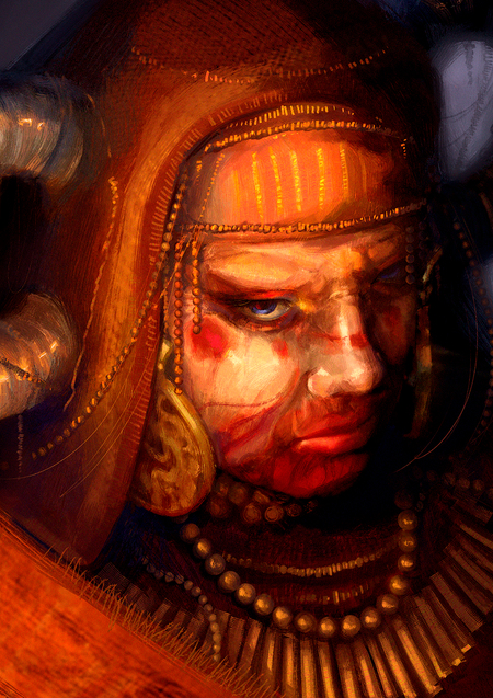Орла — первая полукровка, которую встречает Падма. Женщина долгие оды занимала пост старейшины деревни, но главная героиня и подумать не могла, что всю жизнь контактировала с обладательницей божественной крови. Моей задачей было создать образ, отображающий восточный склад ума, которому присущи спокойствие, тишина и невозмутимость. Поэтому силуэт старейшины обтекаемый, круглый и без острых углов.
