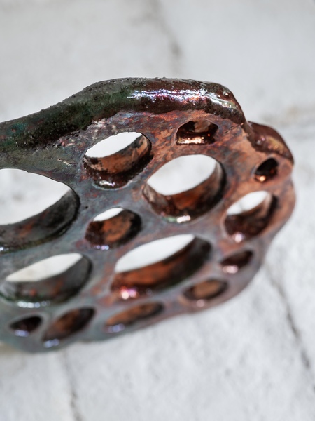 Chamotte, glazes, hand building, reduction firing with smoke 2024. Length 530 mm, height 200 mm, depth 180 mm 2.6 kg Created in a single copy. Price 85000₽