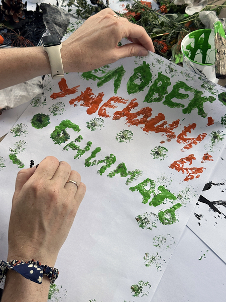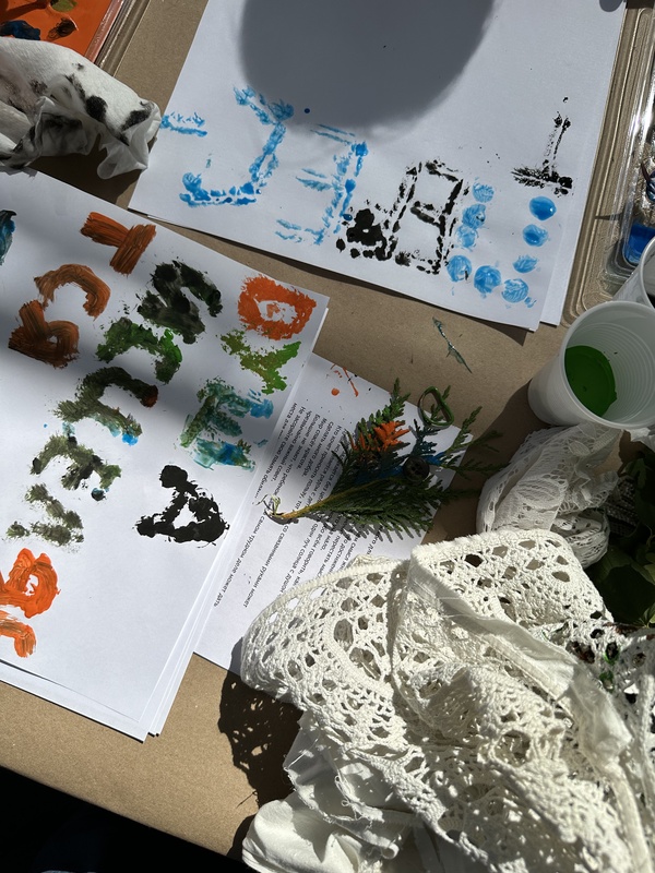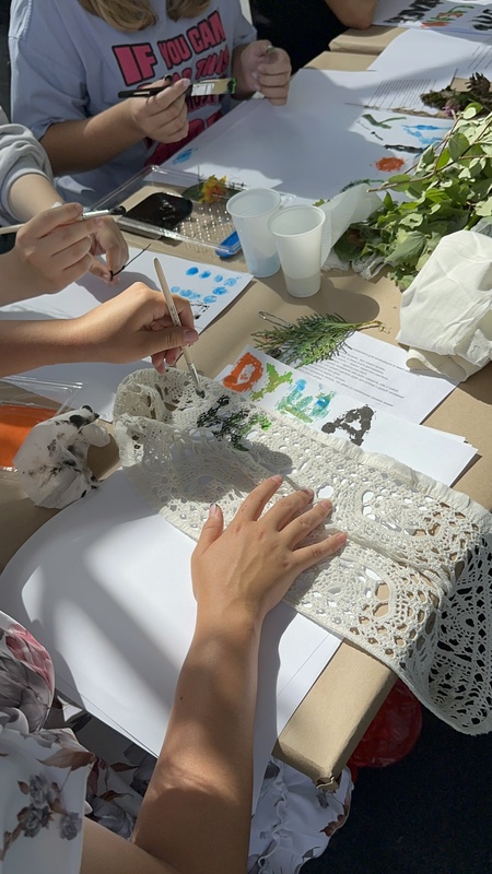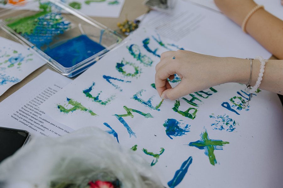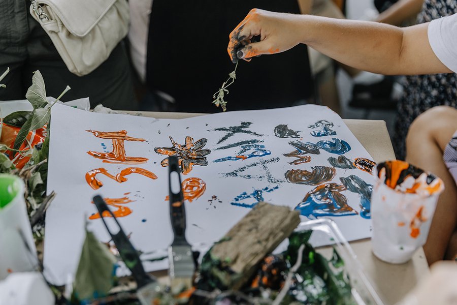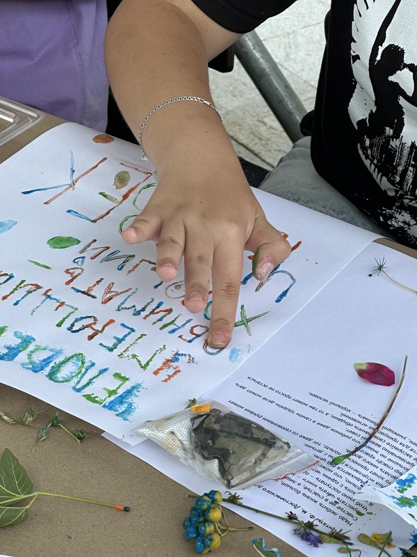 Участники работали в технике оттиска с использованием артефактов, найденных в городе — камни, ветки, цветы, монетки и даже лоскутки ткани.