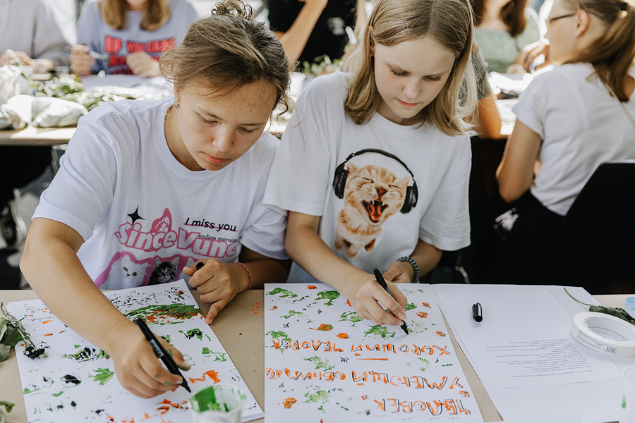 21 июля на центральной площадке фестиваля состоялся мастер-класс, в ходе которого дети создавали графические работы по мотивам высказываний писателя о любви, красоте, человеке и его роли в мире.
