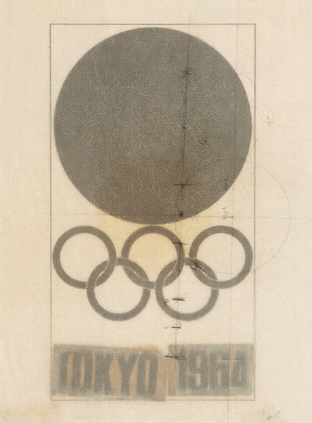 [1] Эскизный вариант эмблемы, Юсаку Камекура, 1964 год [2] Процесс создания эмблемы, Юсаку Камекура, 1962 год