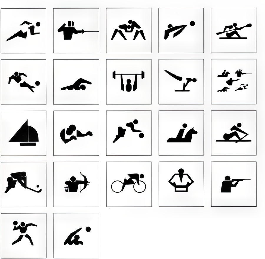 Пиктограммы, использованные на Олимпийских играх, официальный отчет организационного комитета, 1964 год