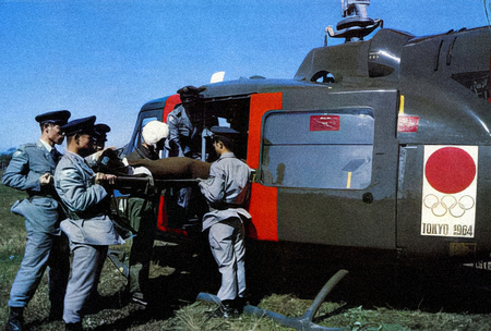 [1] Входная группа на Олимпийских играх [2] Вертолёт с символикой олимпиады Официальный отчет организационного комитета, 1964 год