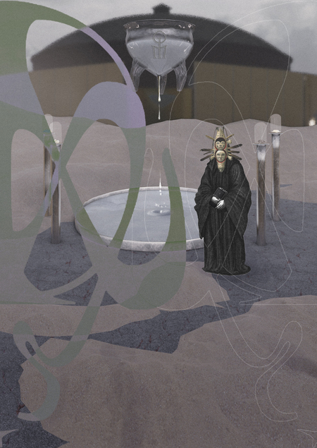За основу формы, ландшафта и характера озеленения были взяты обряд якутского шаманизма и красота степей. Вдохновением послужила картина Костаса Марсана «Иччи», где мистична сама природа — именно она является проводником между двумя мирами.