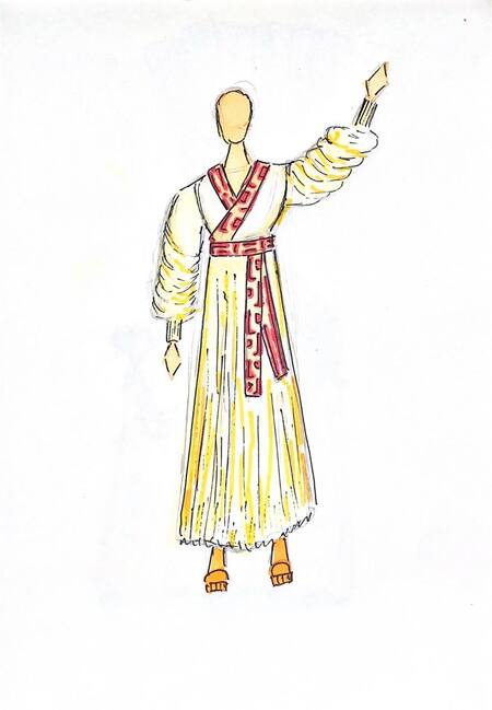 Концепция заключается в преображении классического русского сарафана при помощи элементов современной моды, включая широкие окантовочные ленты с элементами НХП Рязанской вышивки, и объемных рукавов. Помимо этого образ включает объемные ботинки контрастного цвета.