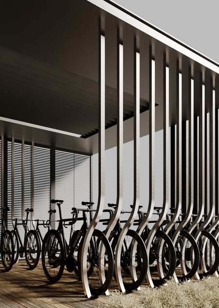 Проект представляет собой разработку уличного павильона велопарковки премиум-класса на территории жилого комплекса «Мангазея на Речном» (г. Москва, САО, Ленинградское шоссе, д. 57–63).