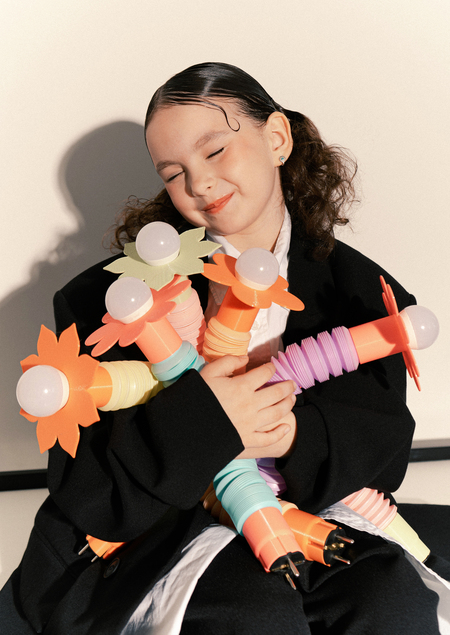 Гофруша родилась благодаря первому предмету бренда — лампы из детской гофрированной трубы. Лампа покорила сердца многих своей необычностью и детской экспрессивностью.