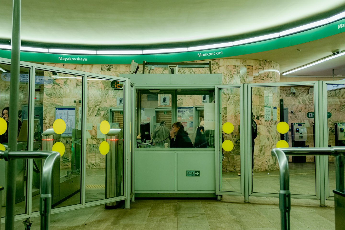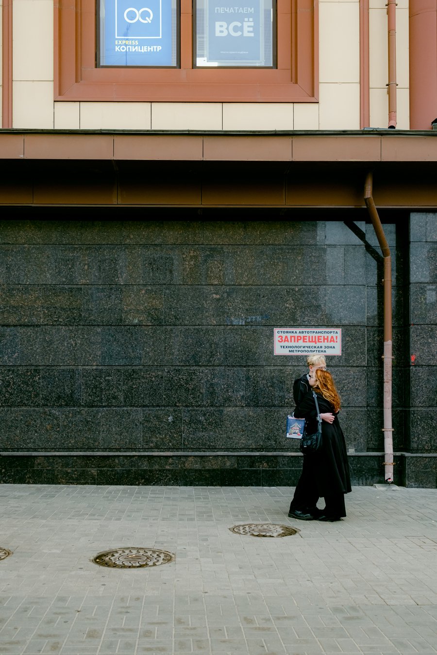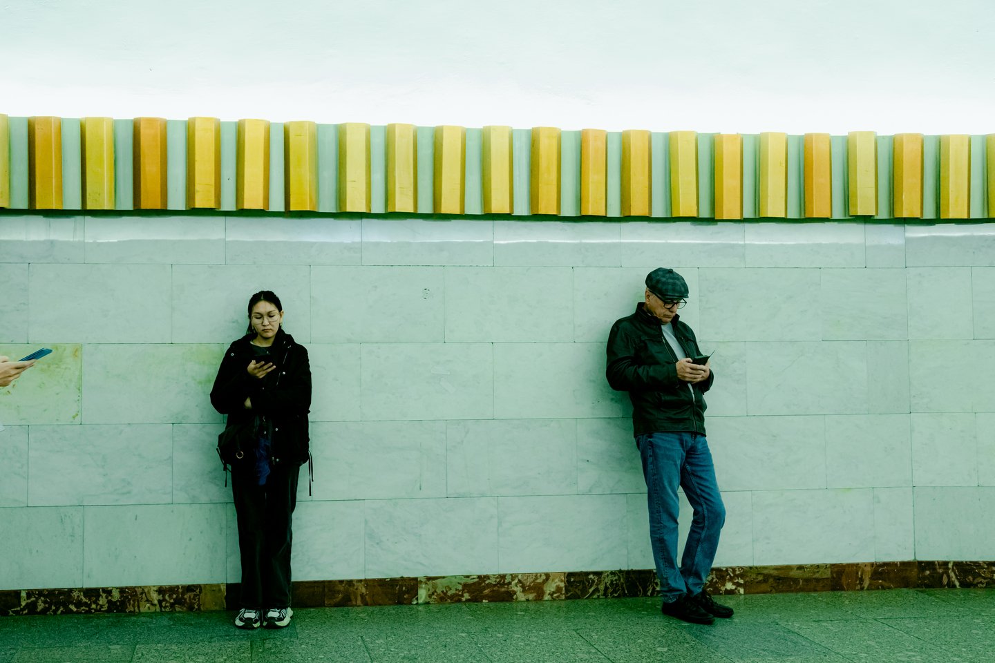 Женщина, замершая около входа в метро, стояла на этом месте всегда — так кстати она мимикрирует под архитектурное решение станции: солнечно-небесное аплуа и ясный взгляд в будущее. В реальности её никогда не существовало, но я ведь её сфотографировала, поэтому она живёт земной жизнью: седеет с годами, красит волосы и губы, смотрит в окно трамвая, жалуется, что снова мигрень, ходит в ЖКХ и сидит на собраниях, гремит посудой на кухне после работы, временами хромает, считает, что твоё от тебя не уйдёт, а также — что вещи из ситца (хлопокашифональнашёлка) крайне лёгкие и гигроскопичные. Она ждёт и дожидается.
