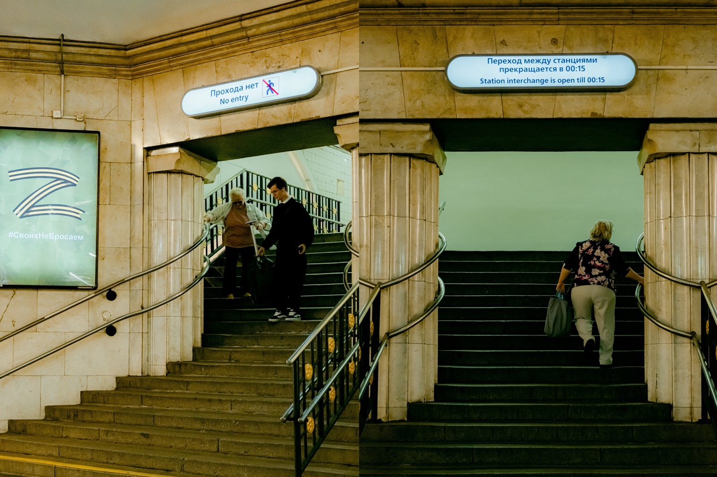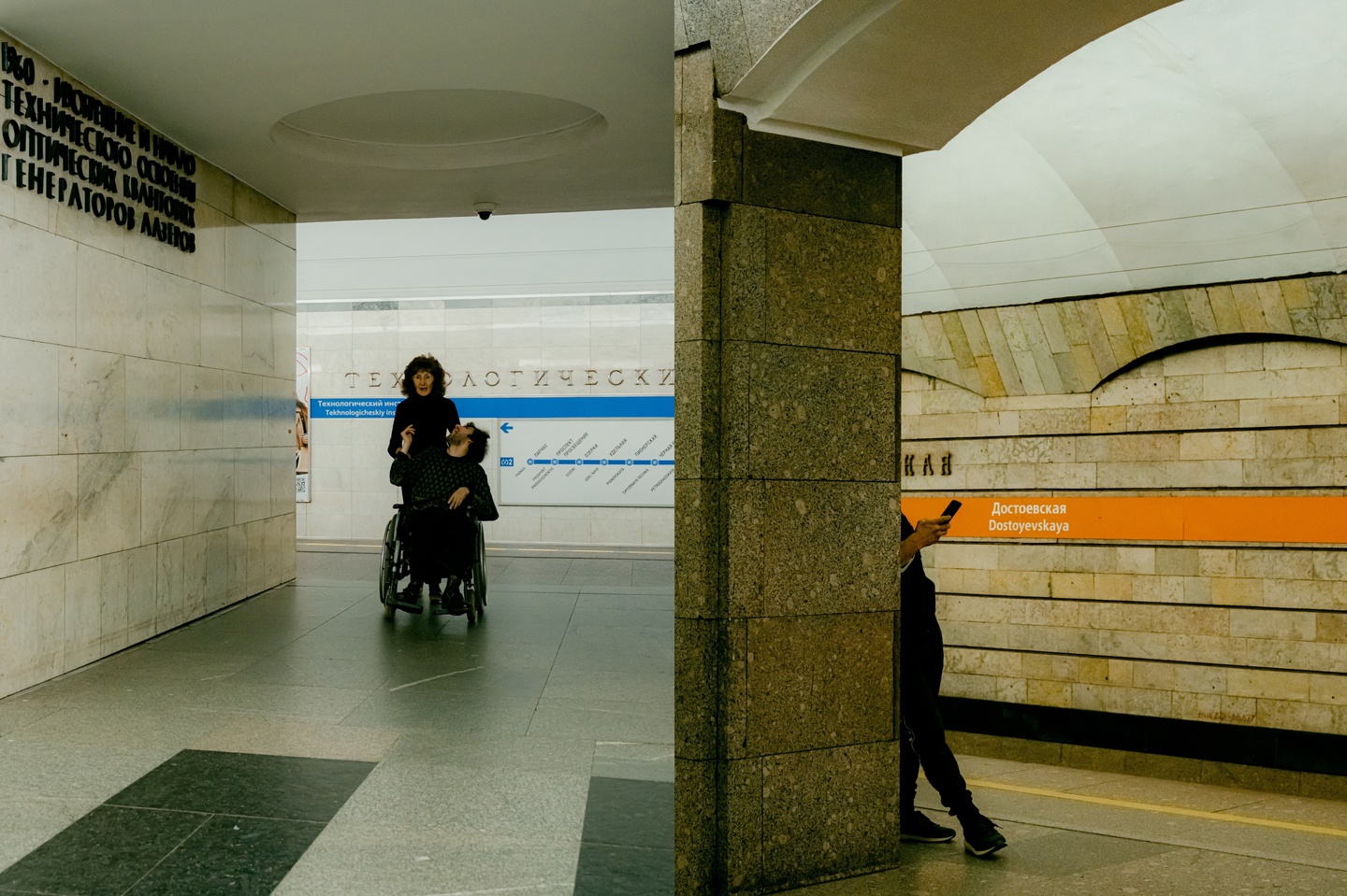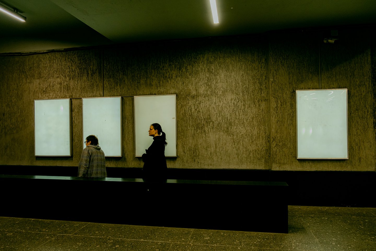 Исследование человеческой уязвимость через дуальность станций, имеющих пересадочные узлы, посредством нонконформистского поведения, взывающего внутренний дискомфорт и стирающего личные границы в общественном месте. Переходящий спектр фотографий — от возрастающей тревоги до чувства отчужденности и непонятности — искривляет пространство и выворачивает наизнанку метро и человека в нём, позволяя усомниться в объективной реальности.
