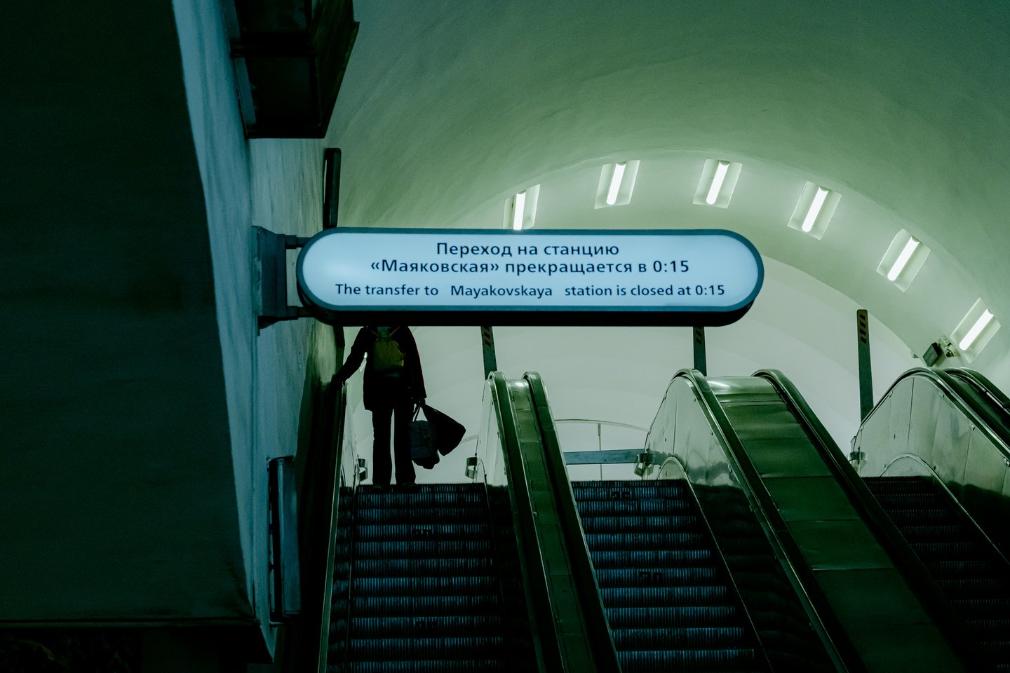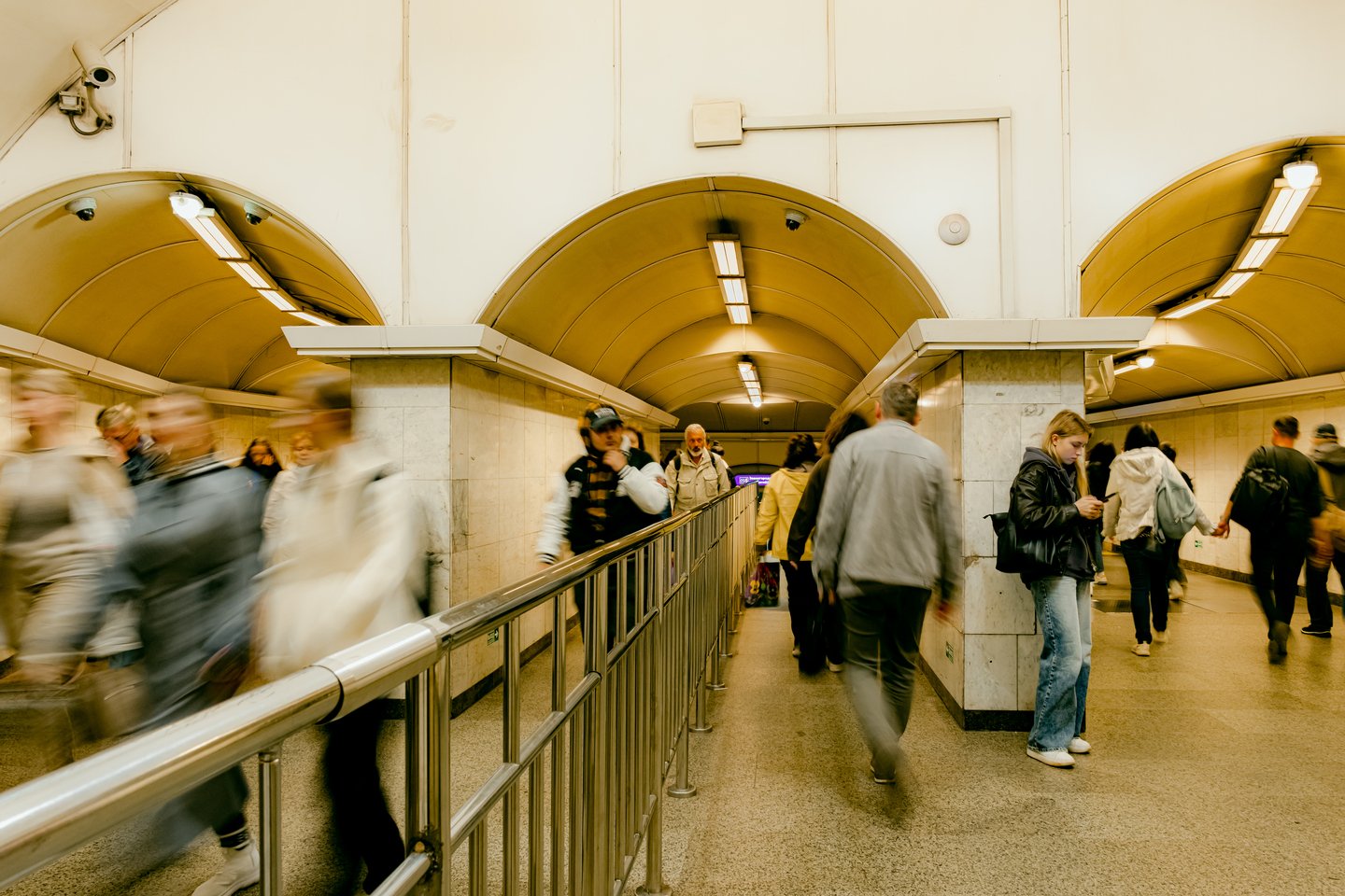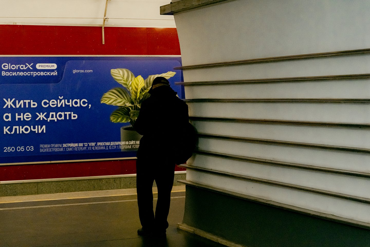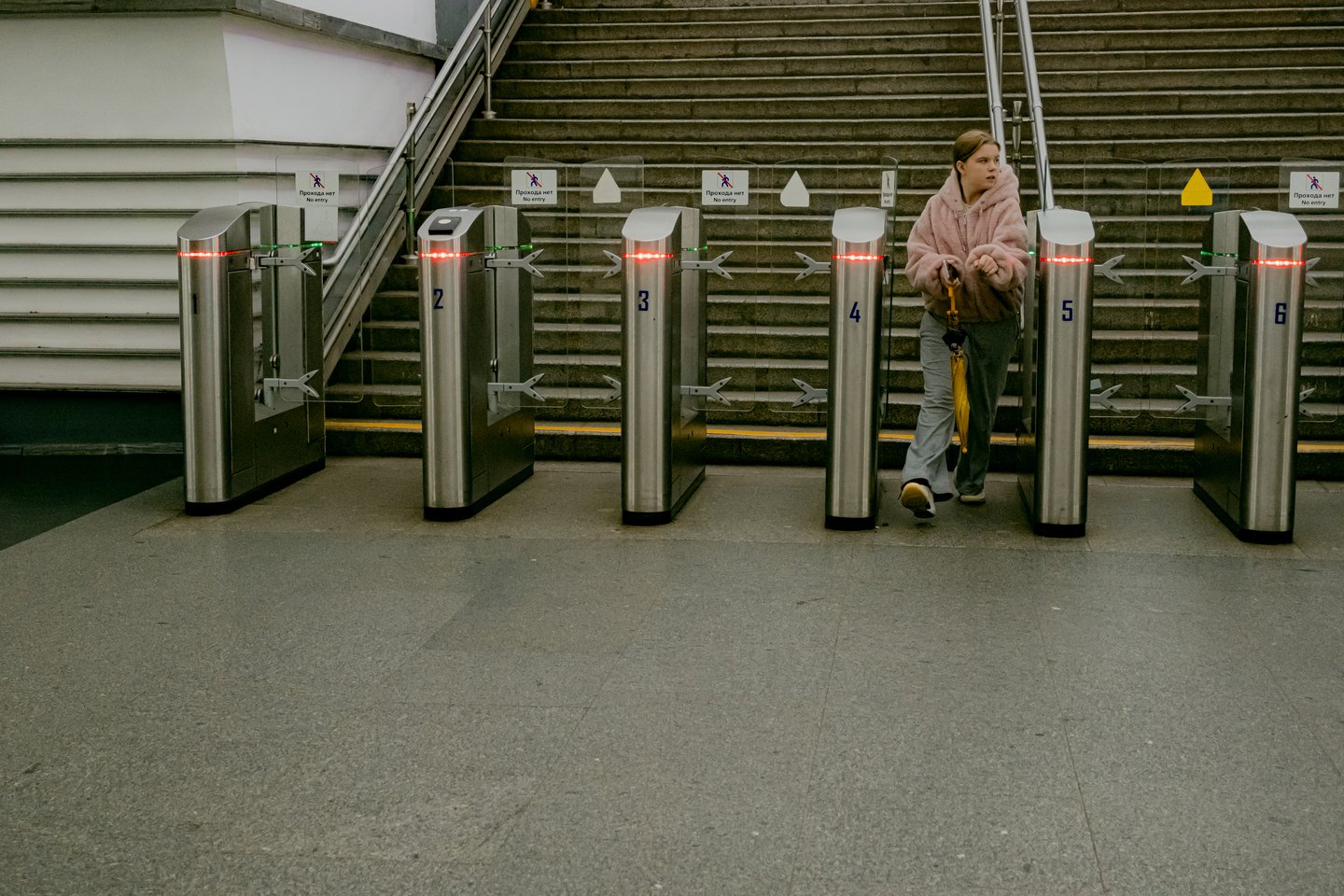 Исследование человеческой уязвимость через дуальность станций, имеющих пересадочные узлы, посредством нонконформистского поведения, взывающего внутренний дискомфорт и стирающего личные границы в общественном месте. Переходящий спектр фотографий — от возрастающей тревоги до чувства отчужденности и непонятности — искривляет пространство и выворачивает наизнанку метро и человека в нём, позволяя усомниться в объективной реальности.