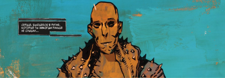 Визуальный стиль Якуба Ребелки стал одним из самых обсуждаемых аспектов комикса. Это не фотореалистичная графика, а скорее сырое, агрессивное и психоделическое высказывание, идеально подходящее для рассказа о самом нестабильном персонаже Найт-Сити Художник использует крайне интенсивные, почти неоновые цвета, которые буквально заставляют страницу «кричать». Этот выбор передает состояние кибер-психоза и сенсорной перегрузки, в котором пребывает главный герой. Стиль брутальный и сырой, что отсылает к эстетике уличного искусства и граффити.