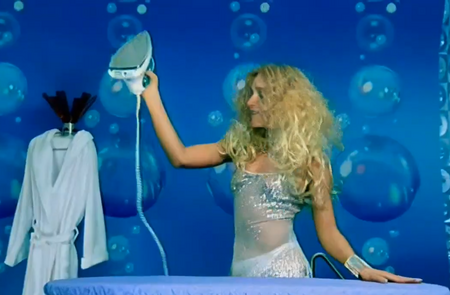 Распространённый стереотип, что наиболее значимой социальной ролью для женщины является роль домохозяйки. В клипе группы Блестящие — «За четыре моря», который уже рассматривал выше, содержится именно этот шаблон, навязанный нам обществом. Перед нами образ девушек, занимающихся бытовыми вещами, таких как глажка белья, готовка еды, уборка и т. д.