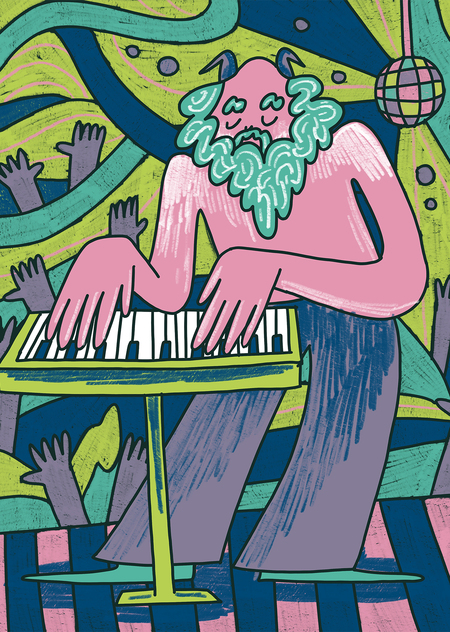 Каждую из иллюстраций объединяет музыкальная деятельность героев: танцы, пение, игра на синтезаторе.