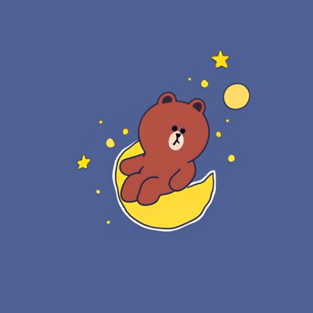 Промпт #2: a photo collage in SPRINGLINEFRIENDS style, ONLY ONE cute brown bear sits on a yellow moon in a space, dark blue monotone minimalistic background without details, kawaii vibe