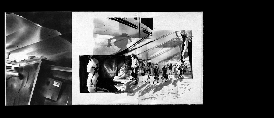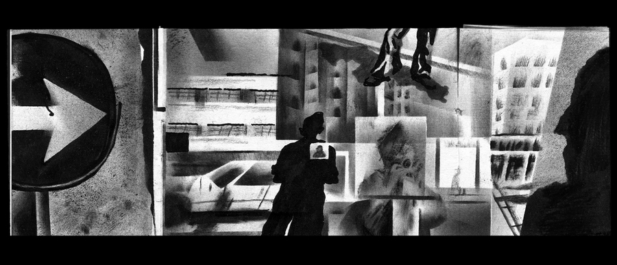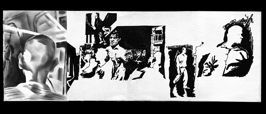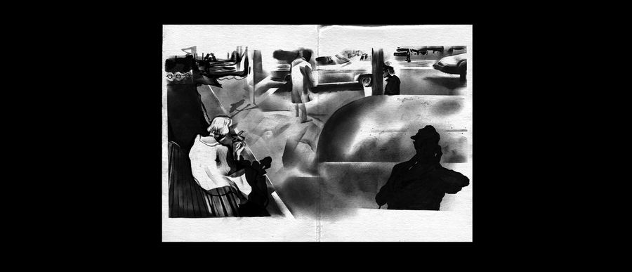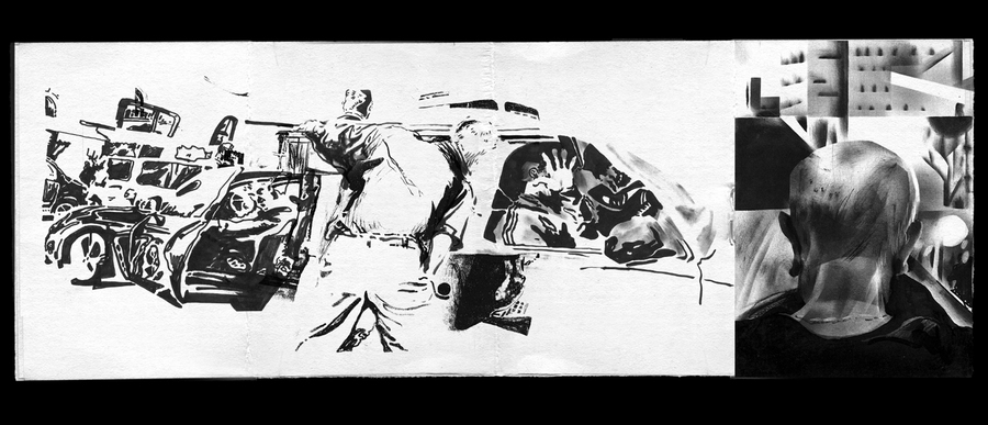 импульсом для создания этого проекта стало мое сильное увлечение стрит фотографией и невозможность ей полноценно заниматься. выходом из этого несовпадения стало совмещение двух визуальных языков — объединение фотографического и рисованного изображения. в результате получился зин, состоящий из несуществующих фотографий — графических листов, созданных на основе фото-коллажей