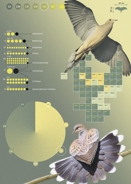 Серия инфографических плакатов, дающих представление об основных данных птиц Мещёры: редкость, ареал обитания, классификация вида
