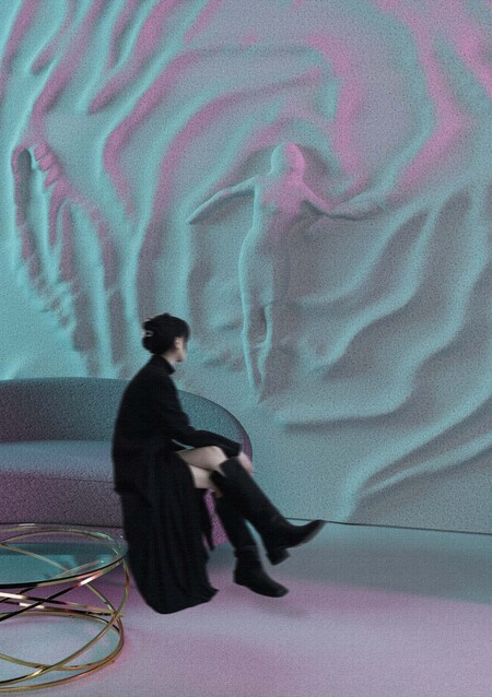 Концептуальная работа стирает грань между природой и человеком, складки ткани затвердевают, напоминая технику мокрой драпировки, напоминающую древнегреческую скульптуру. Попытка запечатлеть ткань в тонкой стене, играя с нашим знакомым окружением и бросая вызов нашему восприятию физического пространства, позволяя твердым стенам плавиться, капать и рябить.