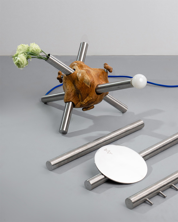 Steel tubes are inserted into the oak or plastic base created with 3D printing. Each tube has its own function such as a vase, a key holder, a mirror and a desk lamp. The Gum Core model can be customized to your personal preferences. The object became the joint project of the SAMPLE ART platform and The Vaults Centre for Artistic Production at the GES-2 House of Culture. It was also presented at the blazar 2024 fair.