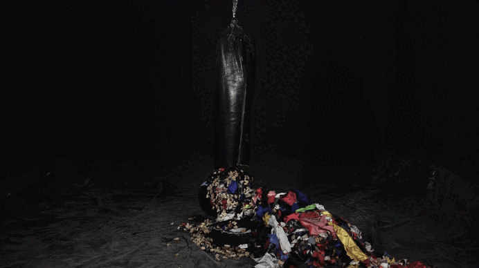 // Тема спорта неразрывно сопряжена с темами борьбы, режима, векторного применения сил и энергии. Подвергая эти образы деконструкции и высекая из символов-угнеталей образы символов-акторов, я стараюсь создать волатильное пространство, аккумулирующее в себе витальное утверждение права на преобразование и переустройство через распад.