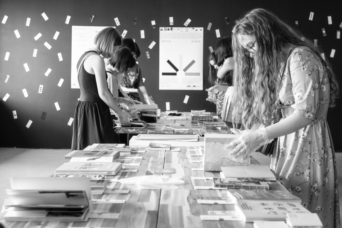Книга, как физический объект, состоит из отпечатанных и переплетенных листов. Эта материальная метафора послужила вдохновением для названия и стиля фестиваля. Экспозиция фестиваля включала 100 книг в трех жанрах, сегментированные под цветовую модель цифровой печати CMYK. Визуальные исследования (C-Cyan-голубой), сложноструктурные книги (M-Magenta-розовый) и покетбуки (Y-Yellow-желтый).