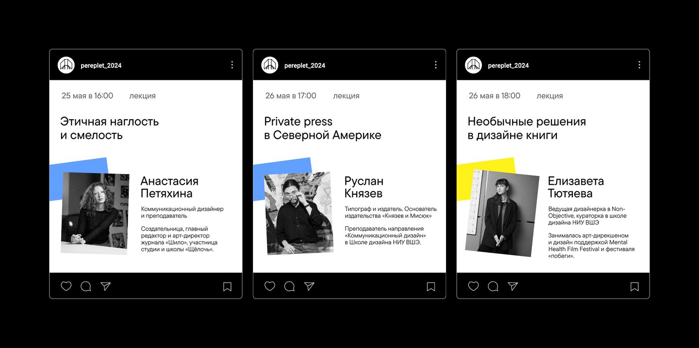 Во второй год ПЕРЕПЛËТА перед нами встала задача, с одной стороны сохранить преемственность, а с другой — масштабировать мероприятие. Если в прошлом году это была выставка студенческих работ о новом опыте проектирования книги, то в этот раз мы решили добавить экспертное мнение профессионального сообщества через лекции и воркшопы. Так, ПЕРЕПЛËТ перерос в камерный книжный фестиваль. Мы уверены, что книга — это медиум, вокруг которого важно создавать события.
