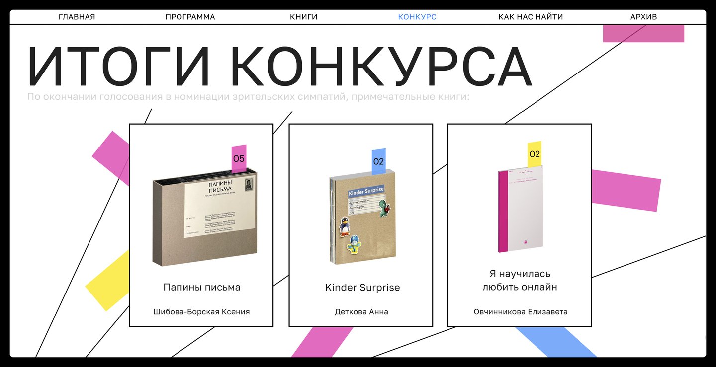 Мы выражаем признательность и благодарность: лекторам и мастерам воркшопов за общий вклад в распространение знаний о книжном деле; коллегам-преподавателям и студентам за замечательные книги в экспозиции; и конечно, сплоченной команде дизайнеров за оформление, организацию и проведение фестиваля. Спасибо и арт-площадке Prografika за гостеприимство!