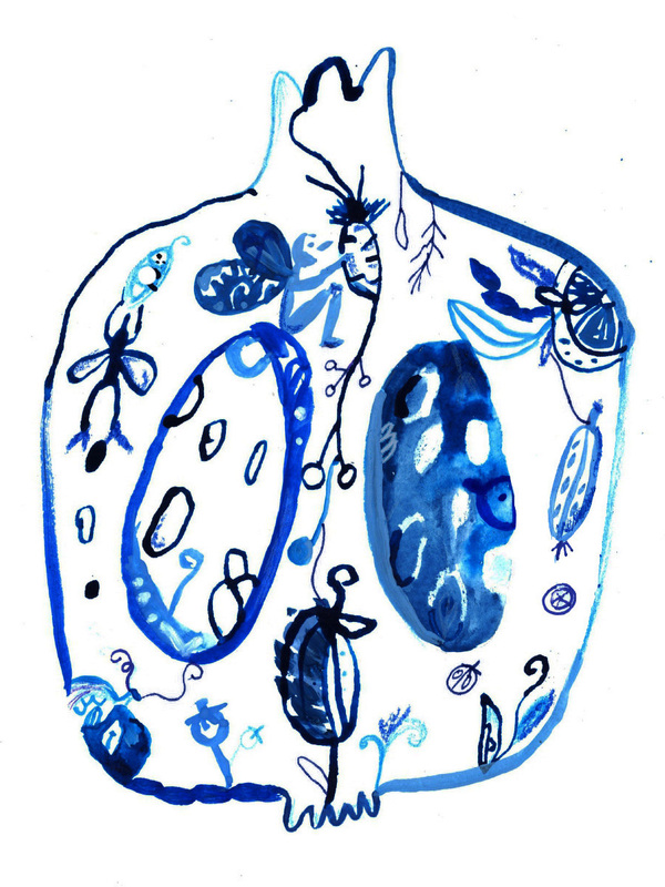 Иллюстрации созданы тушью, гуашью разной плотности, линером, масляной пастелью и карандашом. Я постаралась сохранить декоративность и плавность гжели, сочетая её с экспериментальной графикой.