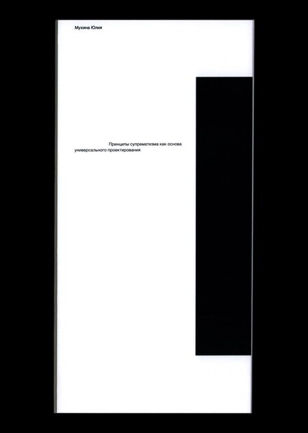 В основу макета положен «нуль форм» — Чёрный квадрат. Внутри него и текст, и изображения могут передвигаться свободно, даже выходить за его границы, подчёркивая бесконечность супрематического пространства, но основная задача их местоположения — «проявить» квадрат, тем самым доказывая универсальность этой формы