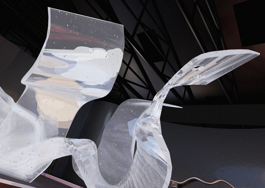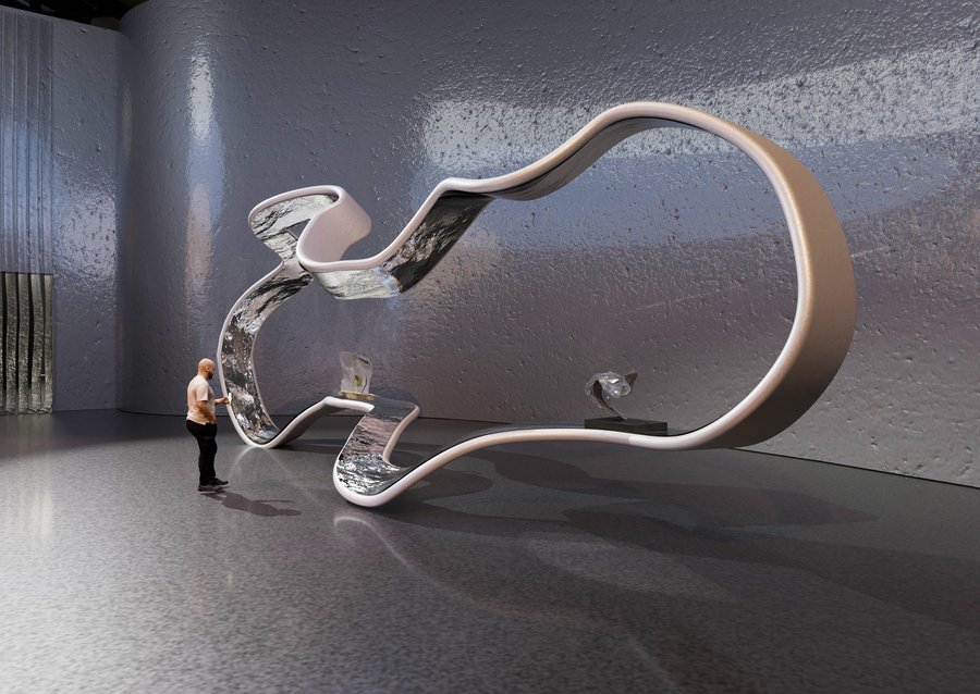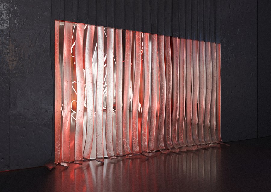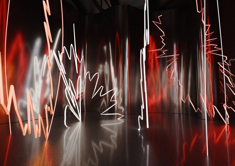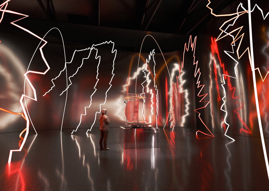 Зал приглашает зрителей ощутить физическое присутствие света, где он обретает материальность, и демонстрирует, как плексиглас становится идеальным материалом для воплощения этой концепции.