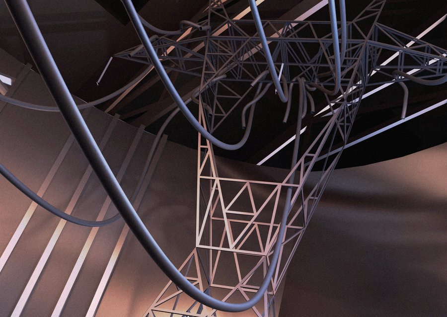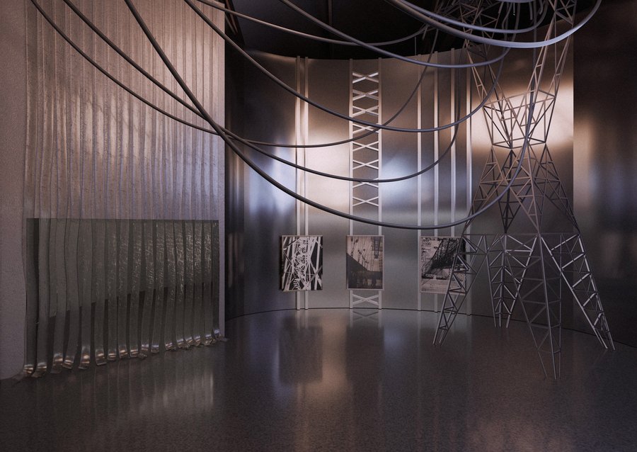На входе в первый зал расположена электровышка с длинными проводами, которые служат как визуальные линии для создания интересных композиций. Она вдохновляет посетителей взглянуть на привычные объекты иначе, как это делал сам Ласло.