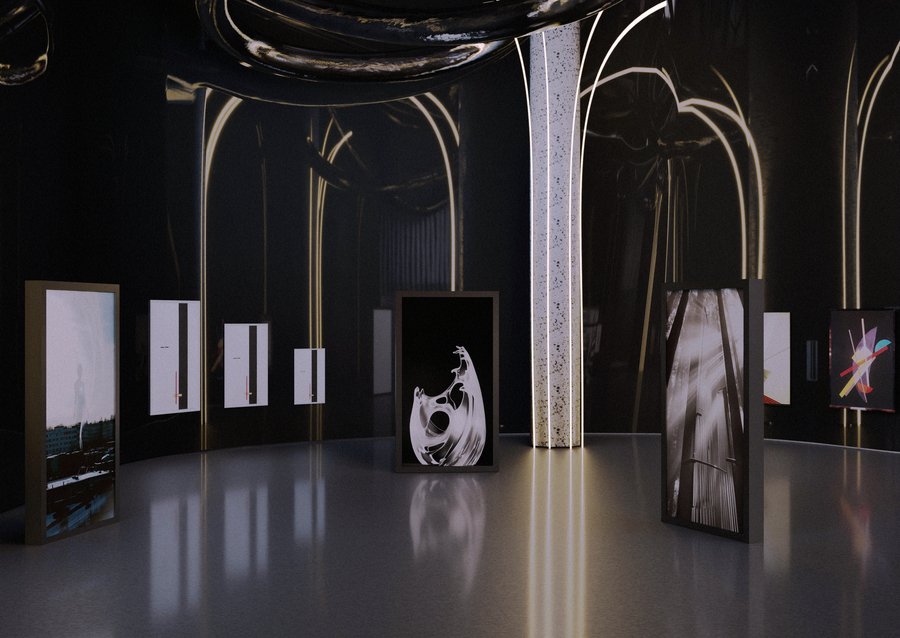 В центре зала установлены экраны с нейросетью, которая позволяет посетителям создавать свои собственные картины в стиле Мохой-Надя. Система предлагает зрителям играть с цветами, формами и композициями, используя его характерные визуальные элементы.