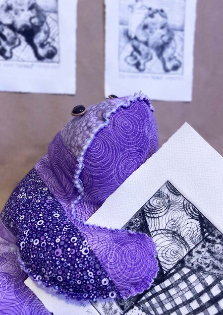 Моя коллеция жаб и лягушек, отраженная с помощью техники глубокой печати, показывает личную глубокую привязанность к феномену любви к жабам и лягушкам и само обожание образа жаб и лягушек. Большая часть, которой и посвящена серия, — это созданные вручную фигурки или объекты, поэтому края самих отпечатков немного неровные, они тоже часть идеи самодельности и близости к зрителю.