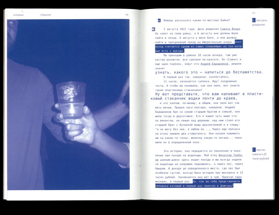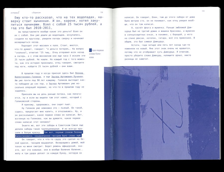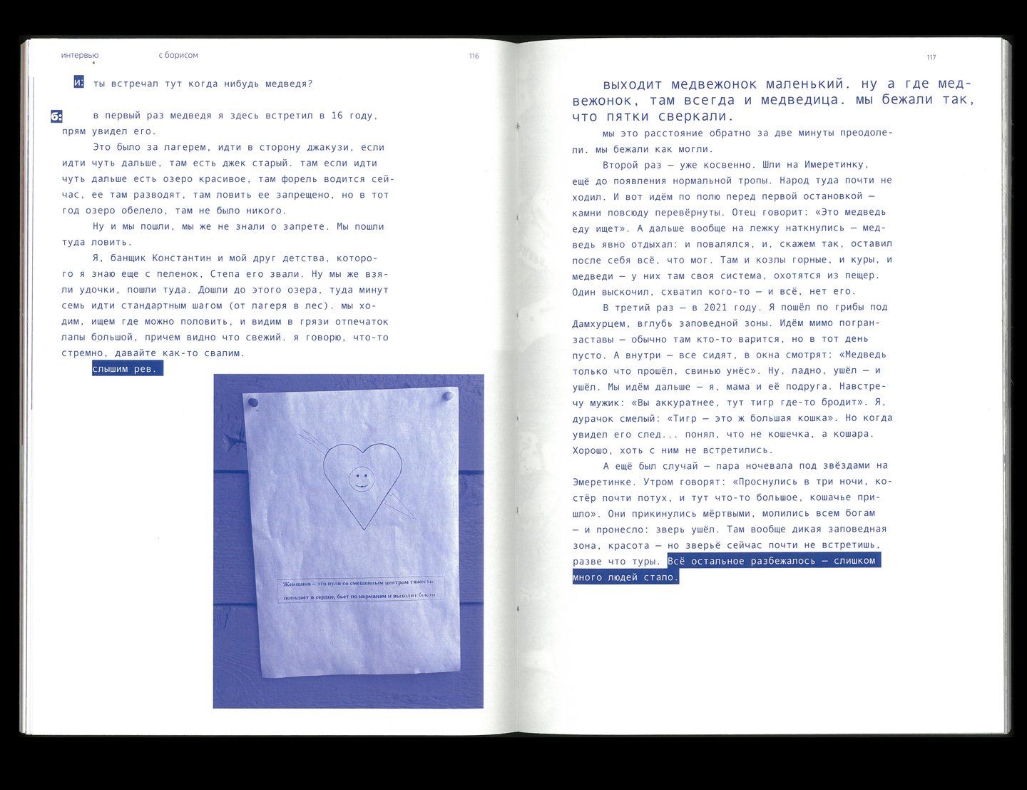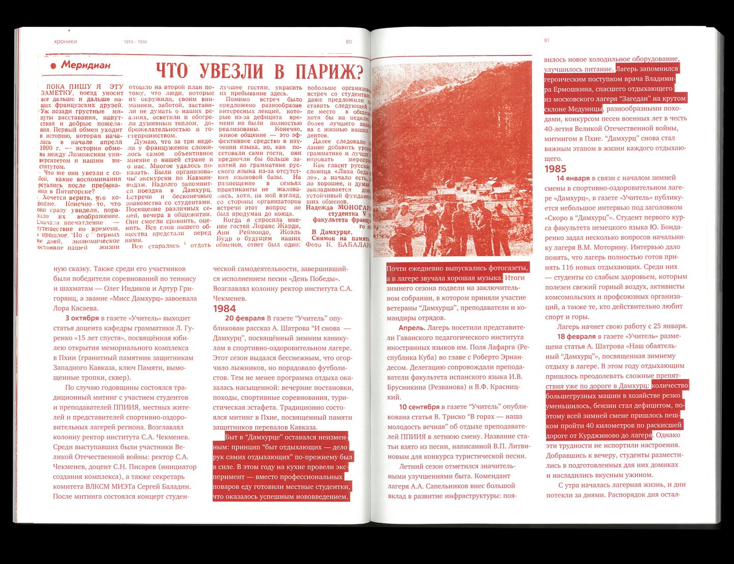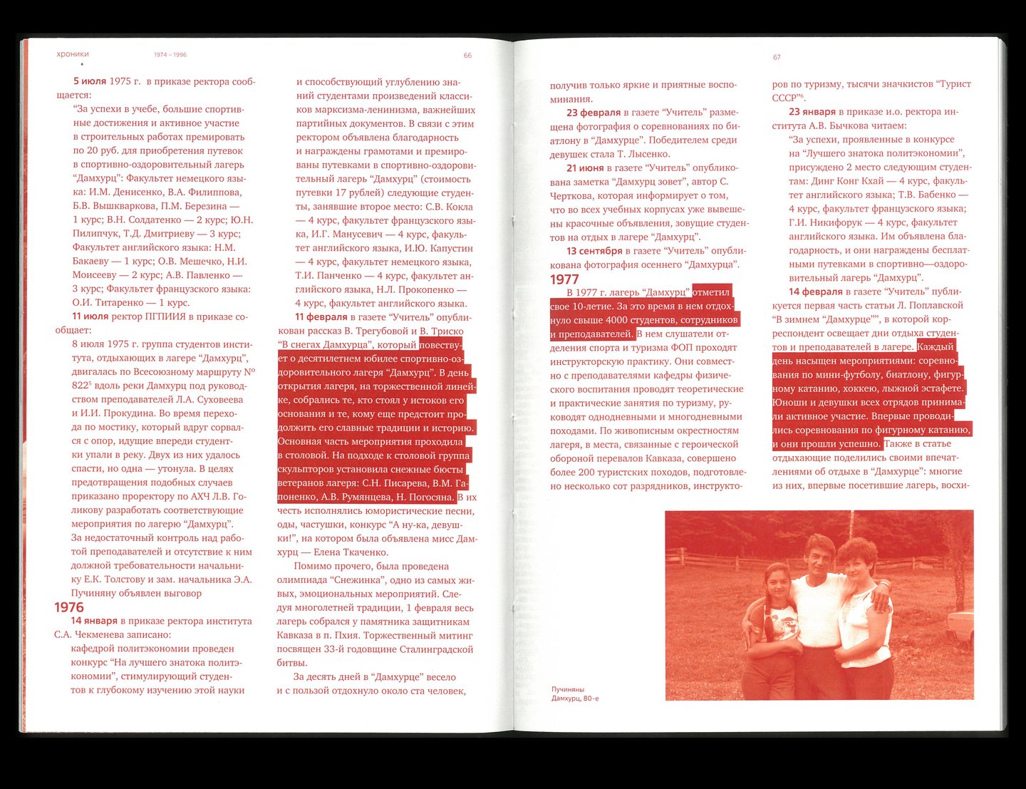 книга посвящена студенческому лагерю и поделена на 3 основных раздела: хроники, интервью и маршруты, которые маркируются цветом. Помимо них в книге присутствуют развороты с фотографиями как архивными, так и современными