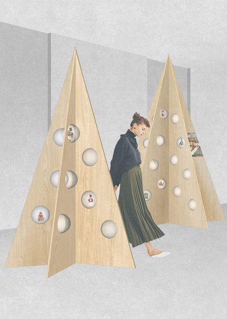 Выставочное пространство поделено на три части. Каждая из них рассматривает историю рождественской ели и ее украшений под определенным углом — с точки зрения исторических событий, географии или же особенностей изготовления.