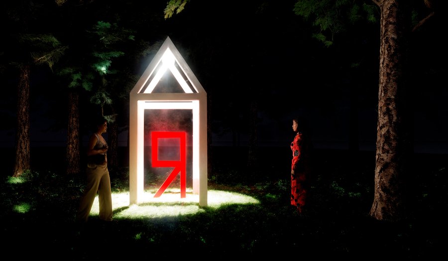 «Я в домике» — светящийся арт-объект, вдохновлённый правилом из «Догонялок». Когда игрок складывает ладони над головой и говорит: «Я в домике!», он временно выходит из игры. Этот жест становится метафорой защиты — в игре и в жизни, когда нам нужно укрыться от трудностей. Объект визуализирует этот момент, предлагая зрителям физически ощутить состояние безопасного «домика».