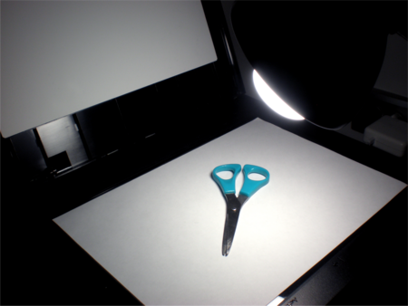 Графика построена по принципу эксперимента: дисплей сканера закрыт листом бумаги, считывается лишь контур.