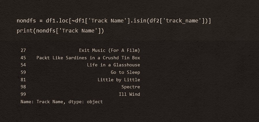 Перед тем, как объединить два датасета, я сравнила их структуры. После поверхностного анализа я выявила сходства и определила, по какому ключу (столбцу) буду объединять базы данных, а именно — по принципу наименования музыкальных композиций.
