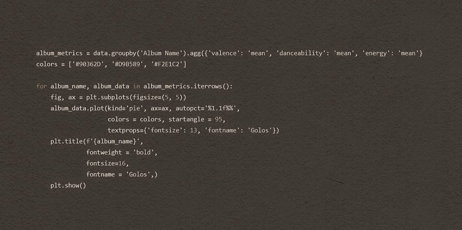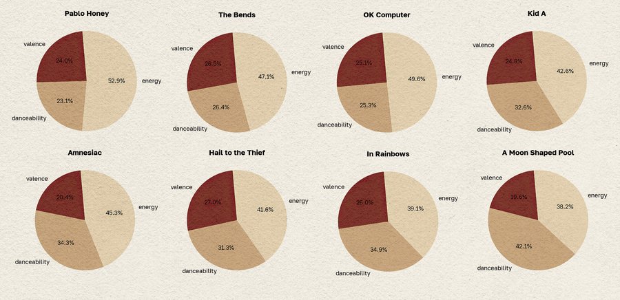 Код круговой диаграммы — средних значений valence, danceability и energy песен Radiohead.