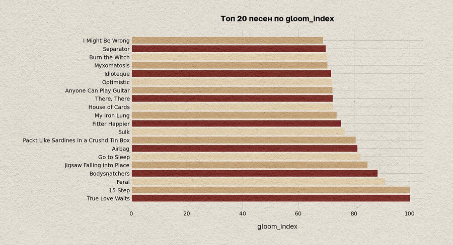 Рейтинг «мрачных» песен Radiohead по gloom_index и valence.