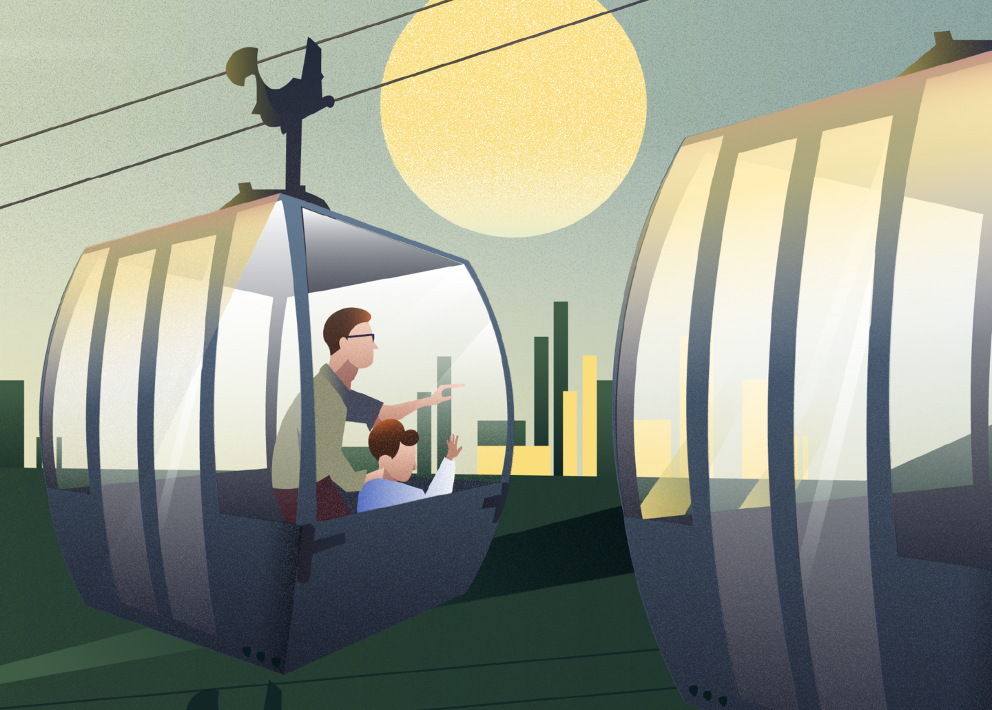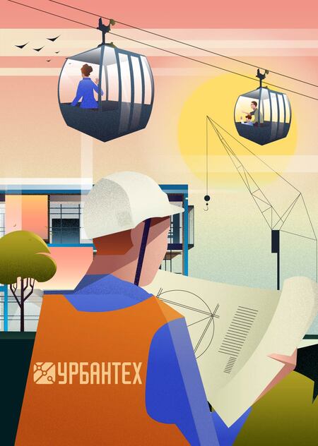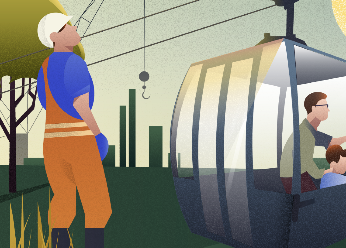 Концепция изображения заключается в имитации стройки канатной дороги за сутки. Работы ведутся с восхода солнца, а заканчиваются на закате, параллельно меняется освещение и появляются жители. Такой прием позволяет уменьшить напряжение от продолжительности работ, которые зрители могут полностью охватить взглядом.