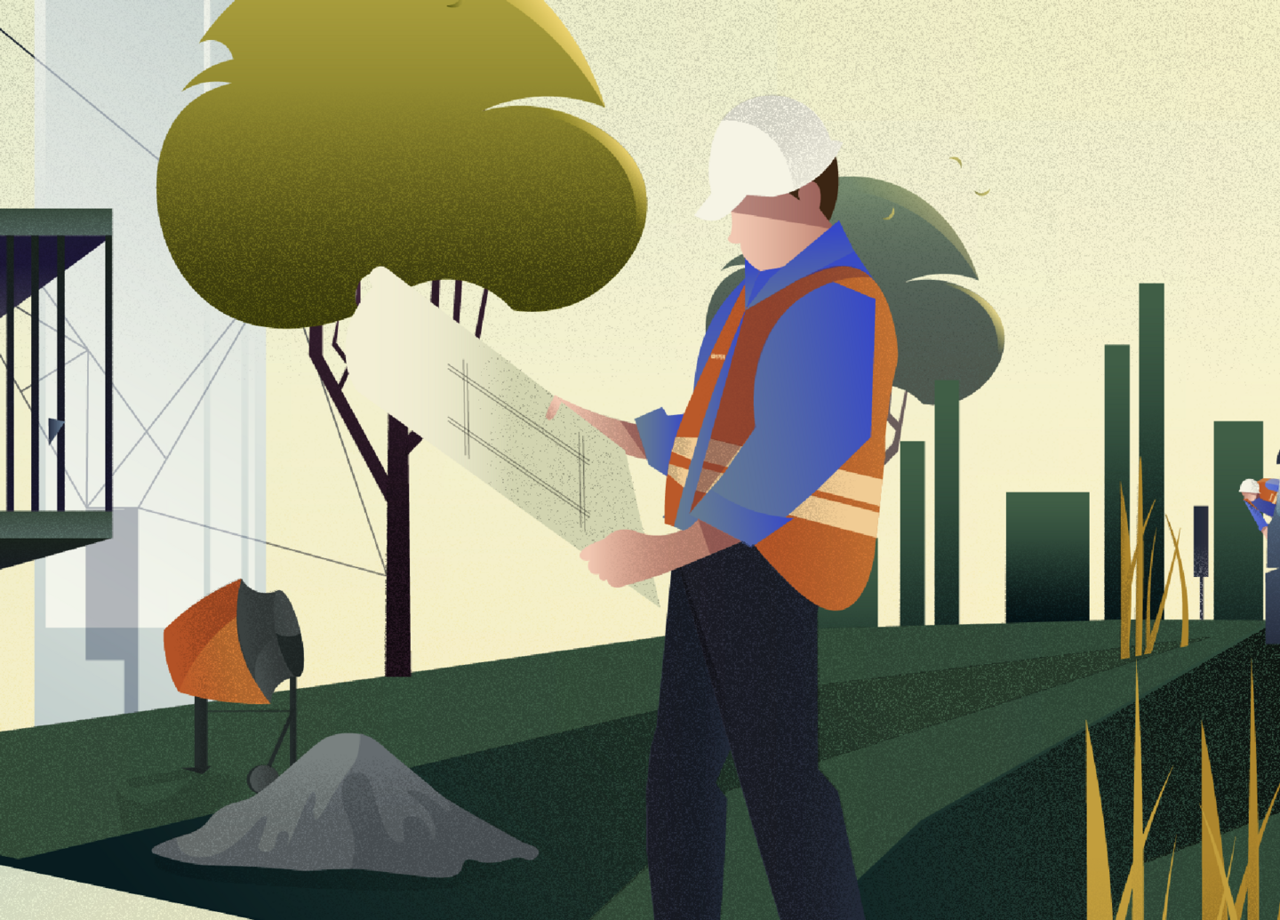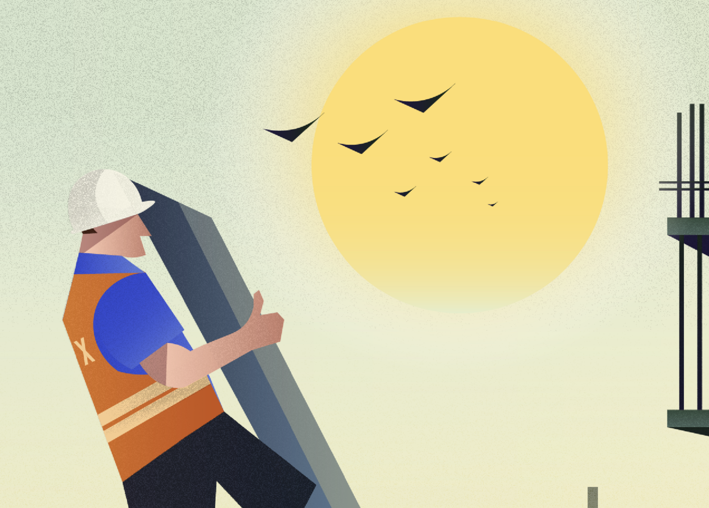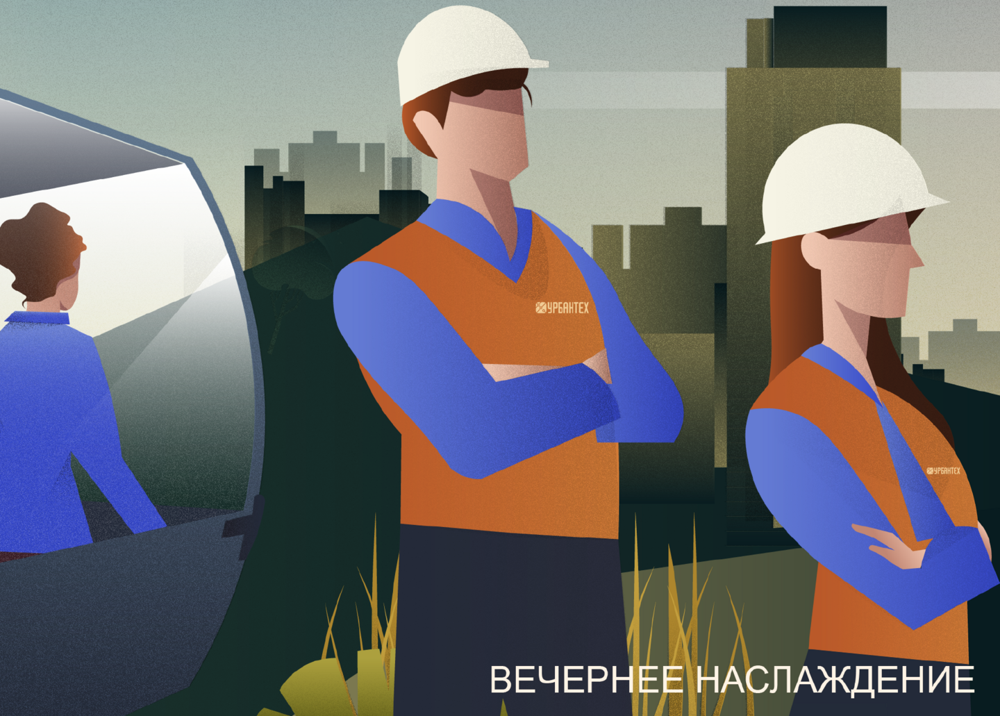 Концепция изображения заключается в имитации стройки канатной дороги за сутки. Работы ведутся с восхода солнца, а заканчиваются на закате, параллельно меняется освещение и появляются жители. Такой прием позволяет уменьшить напряжение от продолжительности работ, которые зрители могут полностью охватить взглядом.